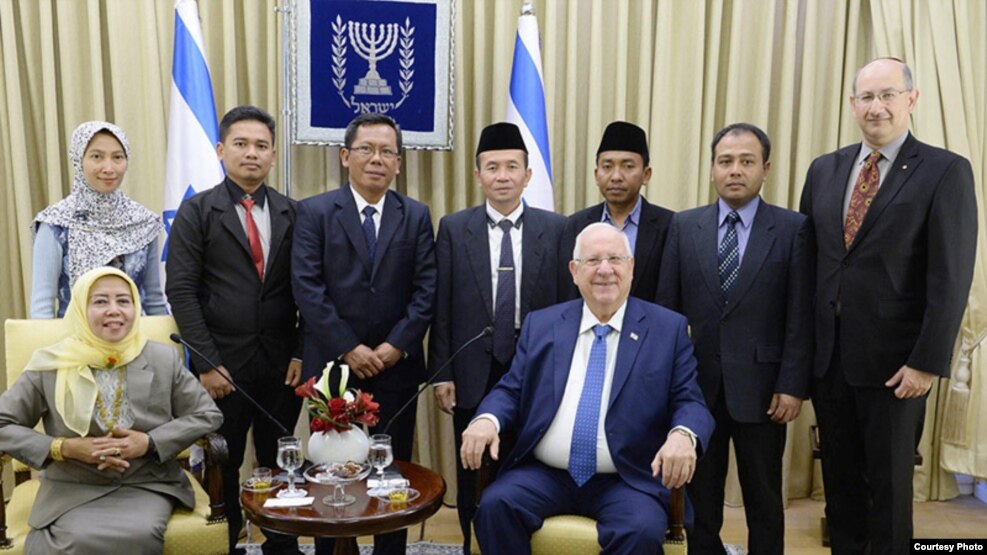 Presiden Israel Reuven Rivlin Rabu pekan lalu (18/1) menerima tujuh orang Muslim Indonesia, termasuk Profesor Istibsyaroh, ketua Komisi Perempuan, Remaja, dan Majelis Ulama Indonesia (MUI) Pusat. Dalam foto yang dilansir situs Kementerian Luar Negeri Israel, Profesor Istibsyaroh, berjilbab kuning, duduk berdampingan dengan Rivlin.