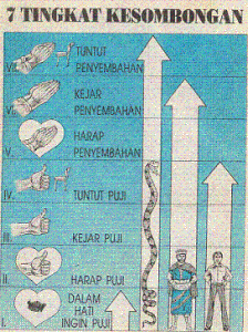Inilah garis besar dari 7 tingkatan kesombongan. Kita perlu mengenal setiap tingkat, supaya dapat mengenal perkembangan dosa sombong sehing-ga tidak disesatkan setan dan dapat menolong orang-orang yang terjerat oleh dosa sombong ini.